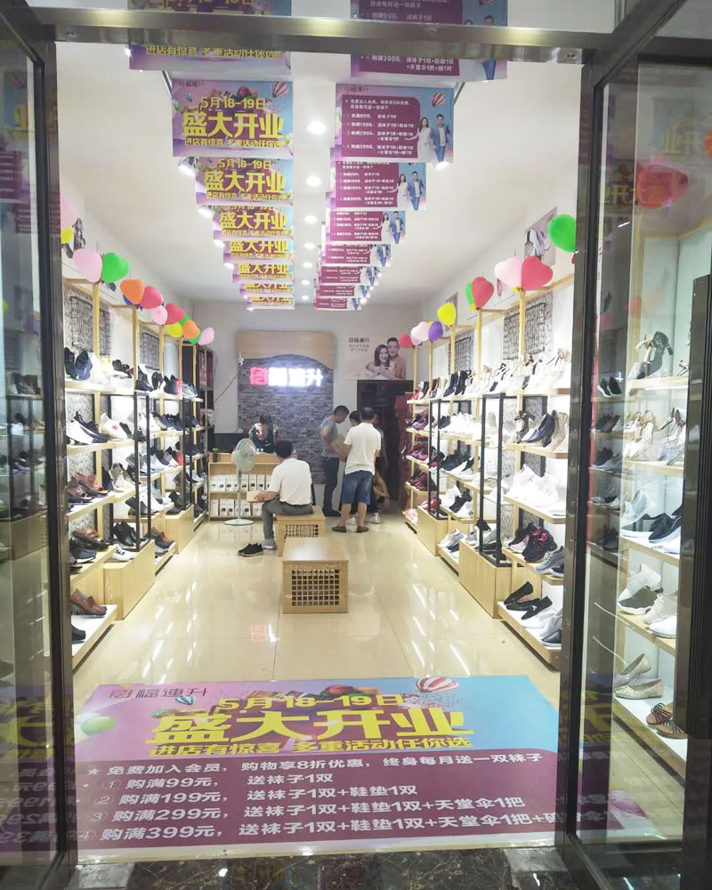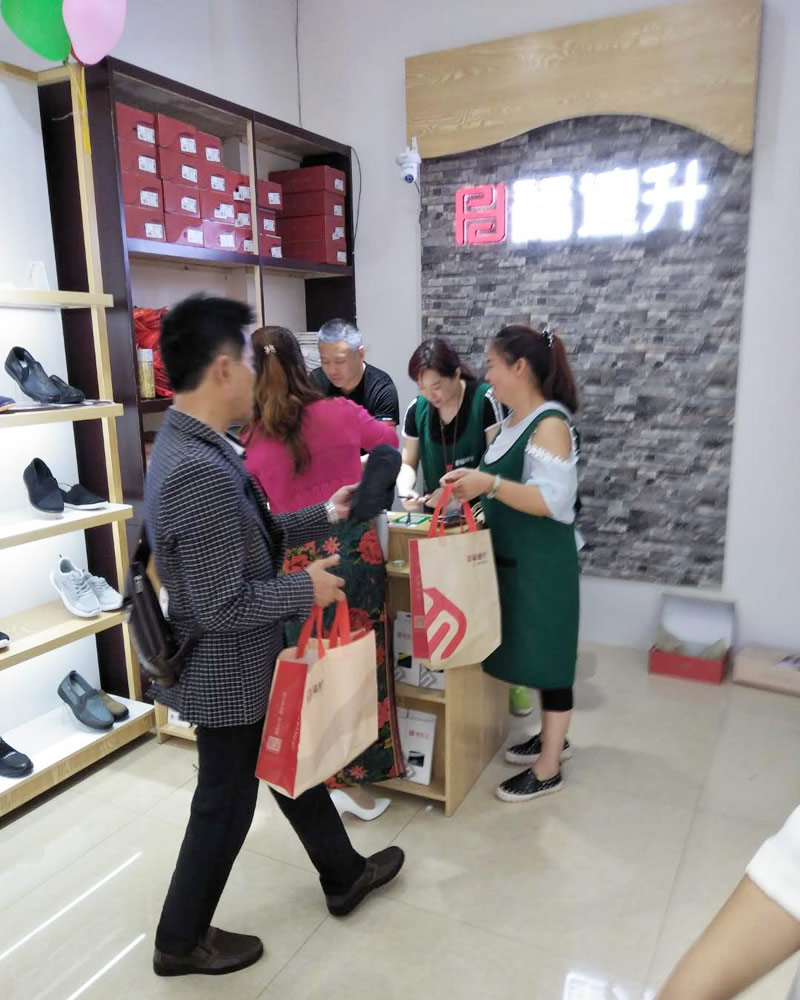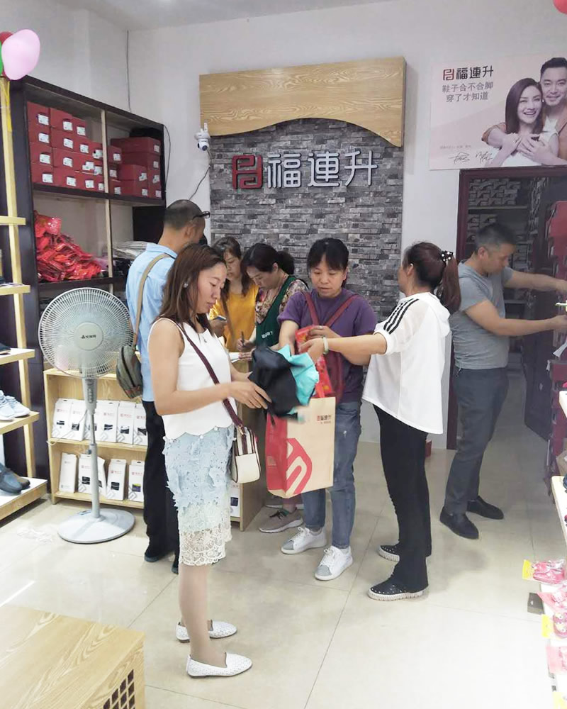 在此,福連升健康休閑中年鞋(原福連升(原福聯升)老北京布鞋)全體員工祝賀:福連升中年鞋四川自貢市富順3店開業大吉、生意紅火、財源廣進!誠邀各地有志之士加盟合作,共享輝煌!