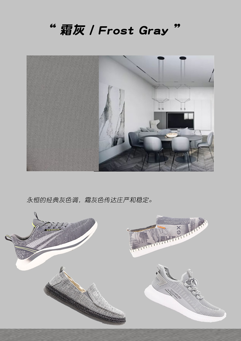 灰色系代表色,符合深秋的內(nèi)涵高雅,也是時(shí)尚色彩不可缺的必有色彩。