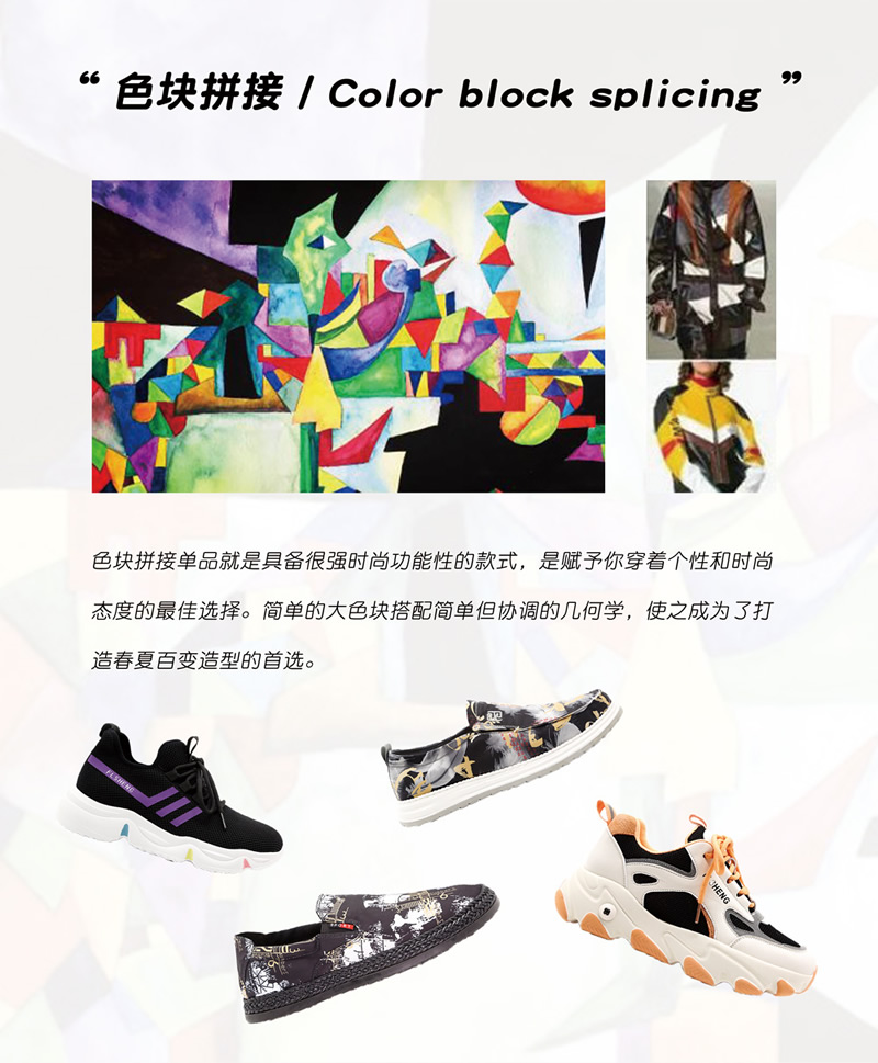 色塊拼接的時(shí)尚之路繼續(xù)前行,更多創(chuàng)意的拼接展現(xiàn)不同風(fēng)格的時(shí)尚元素,色塊和線條往往能夠成為鞋子亮眼的時(shí)尚點(diǎn)。